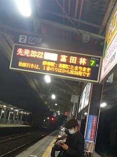20:22の電車、20:38のバス。