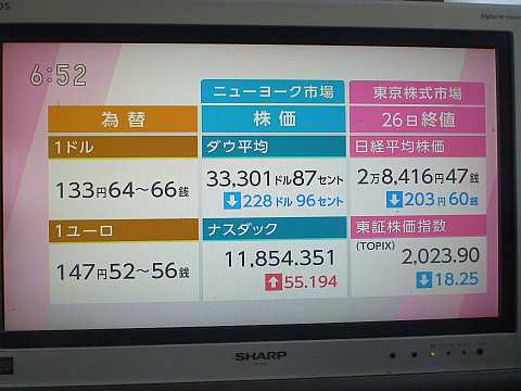 昨日の株価。