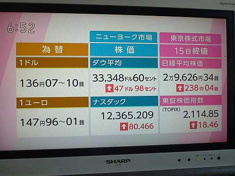 昨日の株価。