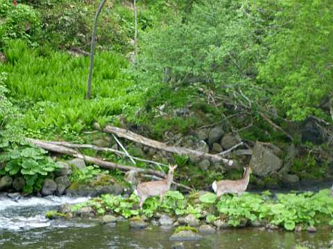 朝6時前に起床。鹿が走って行きました。