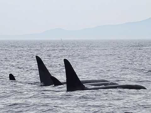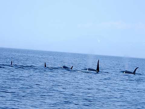 午後の部のシャチ。大集団です。