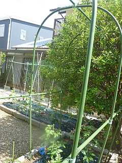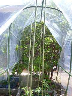 トマトの雨除けにビニールをかけました。