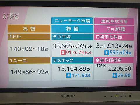 昨日の株価。
