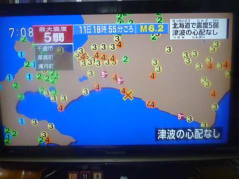 7時過ぎ、北海道で地震。