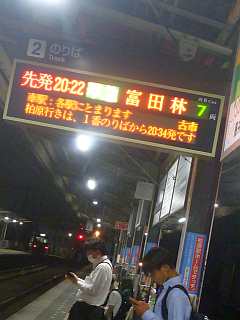 20:22の電車、20:38のバス。