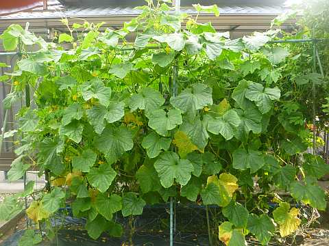 秋菜がきゅうりの収穫に来ました。。