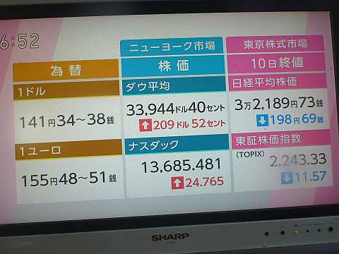 昨日の株価。