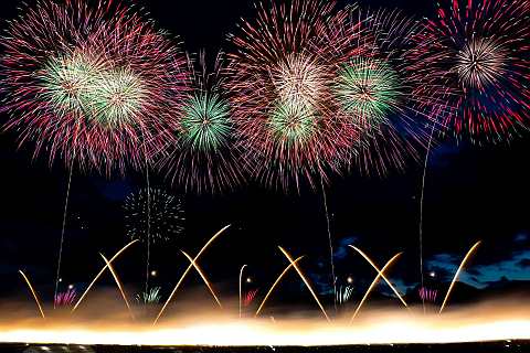 競技花火やワイドスターマインの迫力満点の打ち上げ花火を