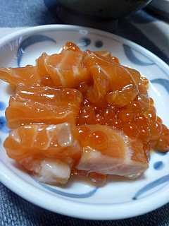 イクラにサーモンの刺身を混ぜてみました。美味。