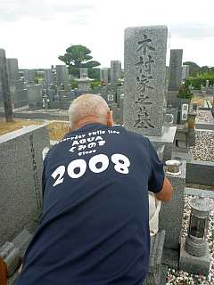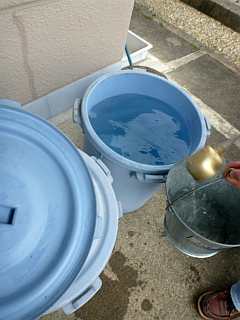 秋の墓参り。水道が壊れてて水汲みが大変でした。