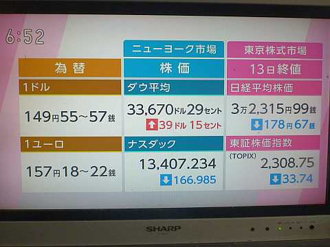 昨日の株価。