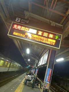 20:22の電車、20:38のバス。
