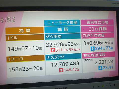 昨日の株価。