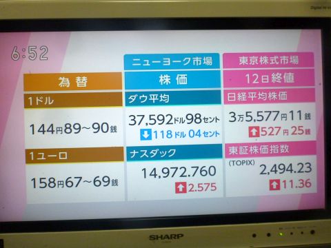昨日の株価。