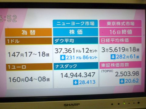 日経平均が一時、3万6000円台。