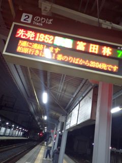 19:52の電車、20:08のバス。