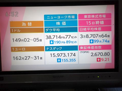 昨日の株価。