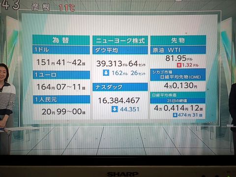 昨日の株価。円安進行中。