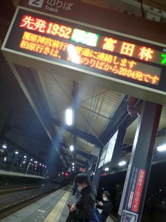 19:52の電車、20:08のバス。