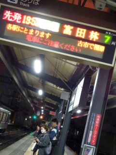 19:52の電車、20:08のバス。