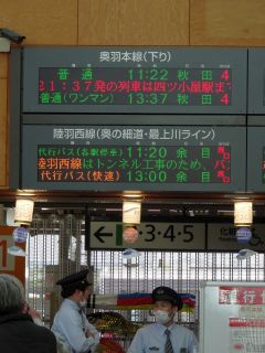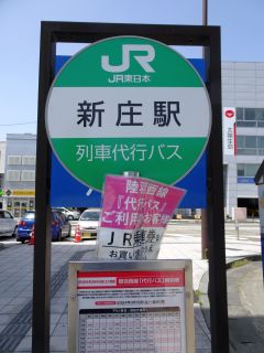 新庄駅からは陸羽西線が運休中のため、代行バス。