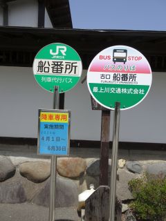 鳥海山と最上川を眺めながら、「船番所」のバス停に。