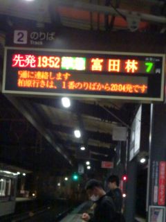 19:52の電車、20:08のバス。