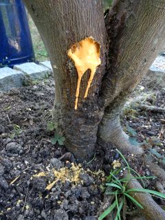 柚子の木、ほじくってみましたが虫が見つかりません。