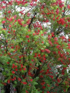川西駅まで歩き。ブラシの木の花が咲いてます。