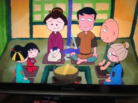 まるちゃん見ながら家ごはん。