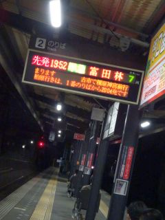 19:52の電車、20:08のバス。