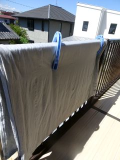 シーツを洗濯して布団を干しました。