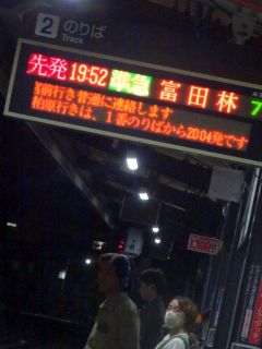 19:52の電車、20.08のバス。