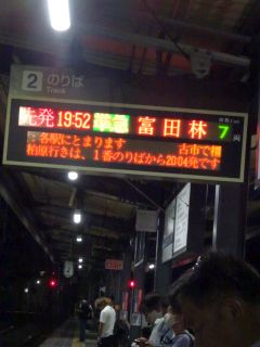 19:52の電車、20.08のバス。