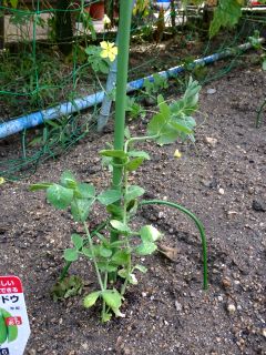 秋きゅうりの苗を植えてみた。