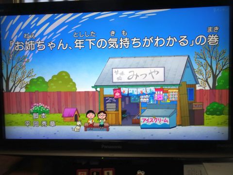 まるちゃん見ながら家ごはん。