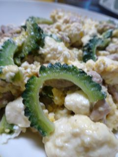 まるちゃん見ながら家ごはん。ゴーヤチャンプル。