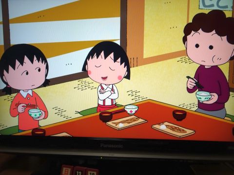 まるちゃん見ながら家ごはん。