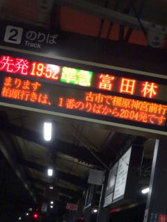 19:52の電車、20.08のバス。