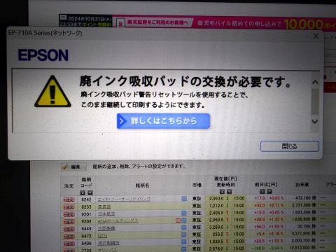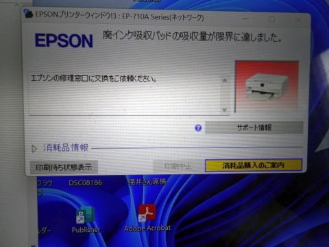 廃インク吸収パッドの交換が必要だそうです。