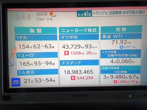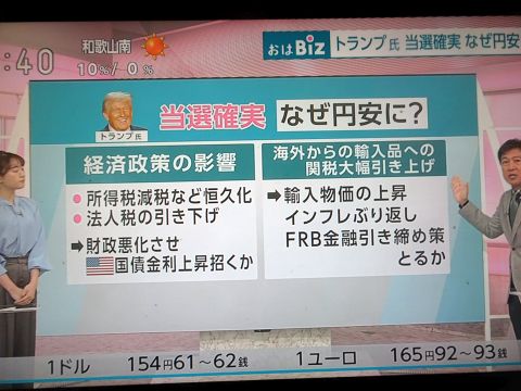 トランプの当選確実で3円ほど円安に。