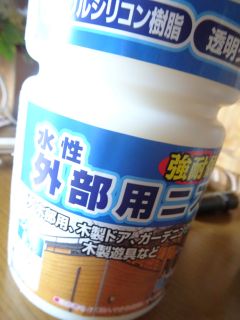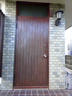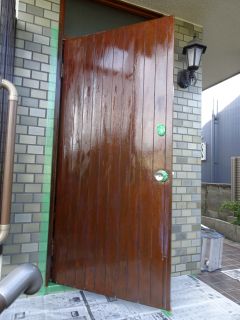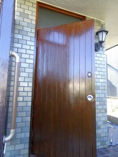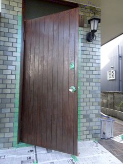玄関ドアのニスを塗りなおし。