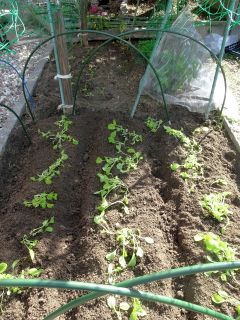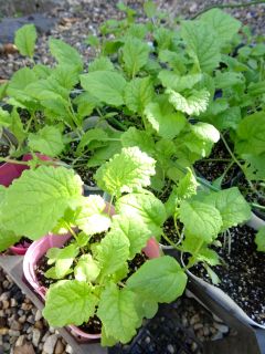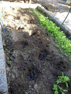 なばなの苗を畑に植えなおし。