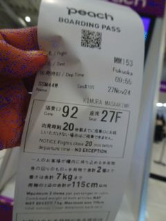 ↓ peach APJ153便 福岡空港行 第2ターミナル