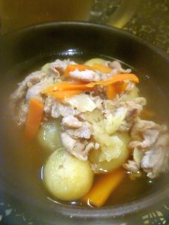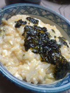 朝ごはん、昨夜の鍋の残りで雑炊。