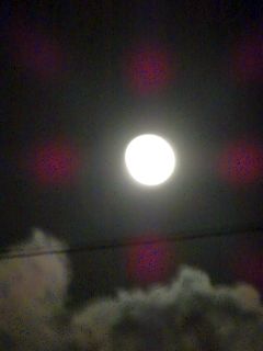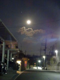 朝の散歩。朝も満月が残ってました。
