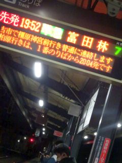 19:52の電車、20:08のバス。