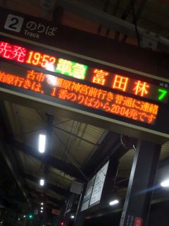 19:52の電車、20:08のバス。