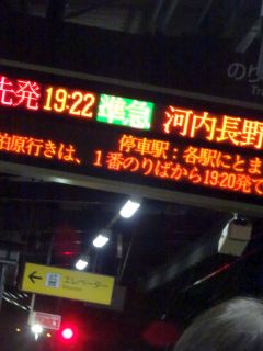 19:22の電車、19:38のバス。