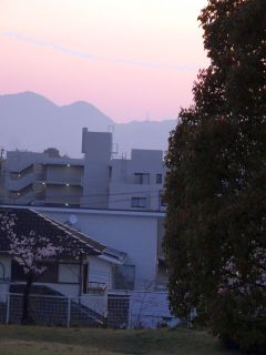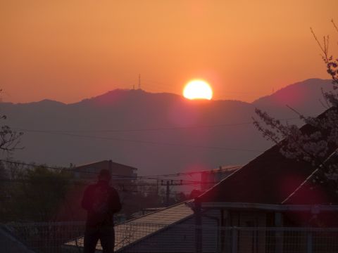 朝の散歩。キレイな朝日が出ました。